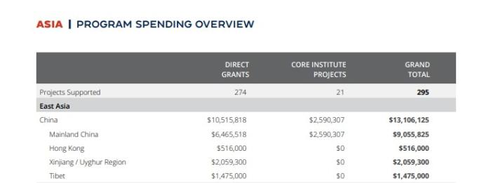 NED在亚洲的投入总额超过5300万美元。其中,针对中国的相关项目金额达到1300万美元,位居全球第一。砸这么多钱,在中国干了什么?