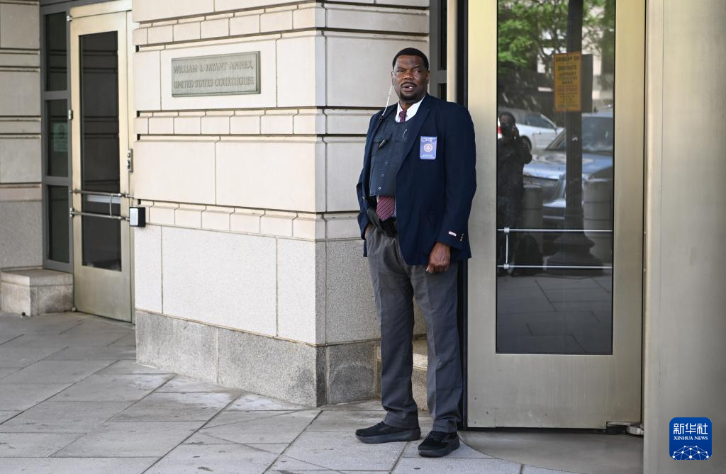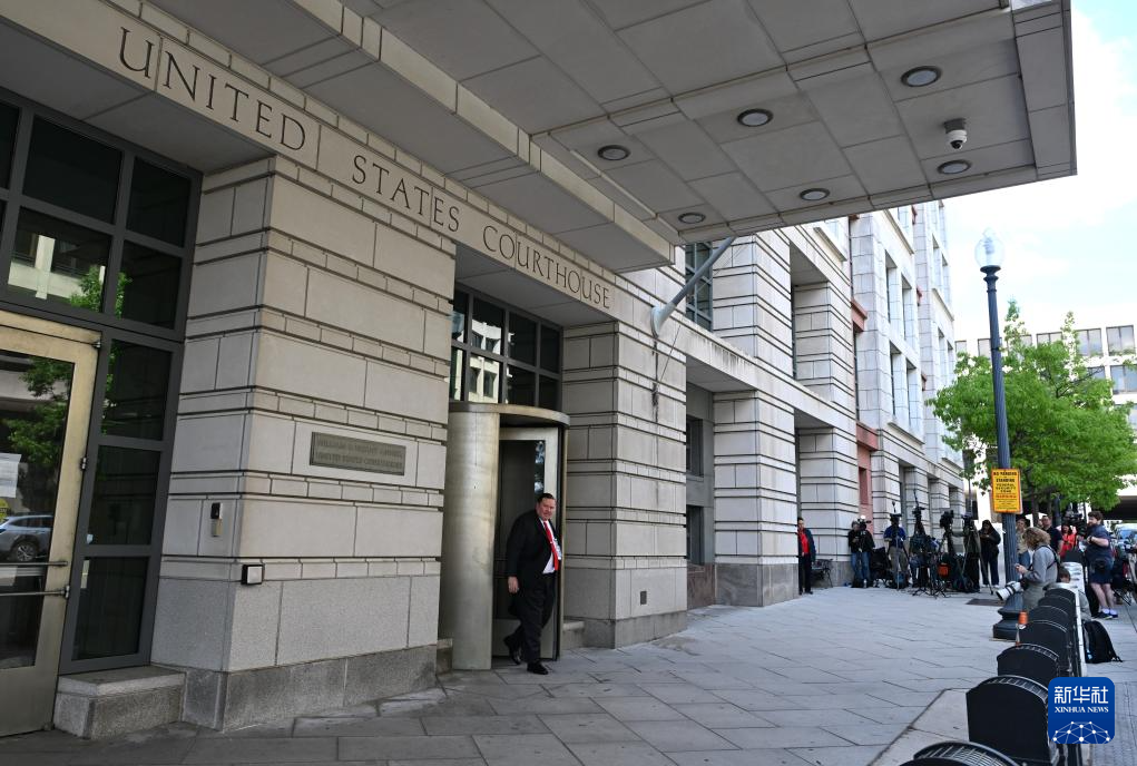 4月27日,在美国首都华盛顿,安保人员在美国哥伦比亚特区联邦地区法院门口警戒。新华社记者 李睿 摄