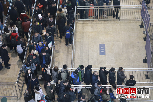 北京南站二楼检票口,北京开往烟台的高铁473次列车即将检票。中国网记者 郭永国 摄