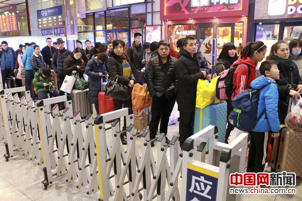 1月13日,2017年春运正式拉开帷幕。旅客在北京南站地下一层快速进站口排队进站。中国网记者 郭永国 摄