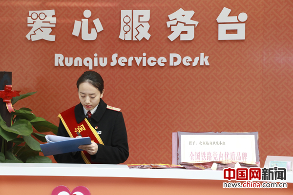 北京南站润秋服务区工作人员正在帮助旅客进行登记。中国网记者 郭永国 摄