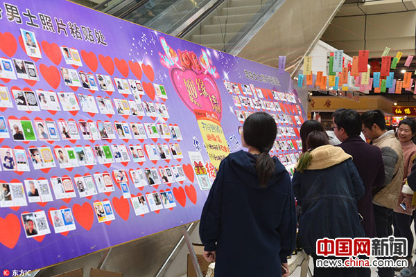 2017年2月12日,在情人节来临之际,河北保定市望都县一家超市设立单身男女姻缘墙,帮助其寻觅意中人。图片来源:东方IC