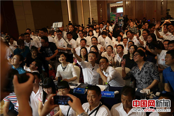 马云与2016届获奖教师合影。