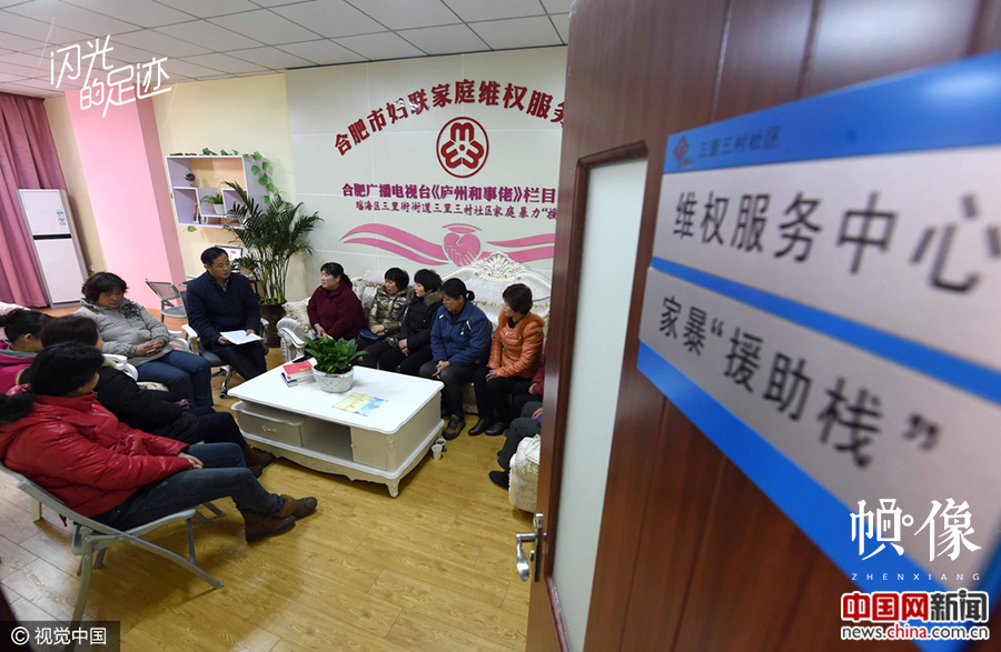 2016年3月1日,安徽省合肥市瑶海区三里街街道三里三村社区“家庭暴力援助栈”,婚姻家庭咨询师在向社区居民讲解反家暴相关法律知识。