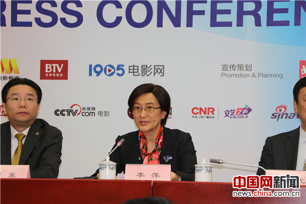 2017年3月23日,第七届北京国际电影节新闻发布会在新闻出版大厦举行。图为中国国际广播电台副总编辑李萍介绍电影节相关情况。中国网实习记者 赵晓雯 摄