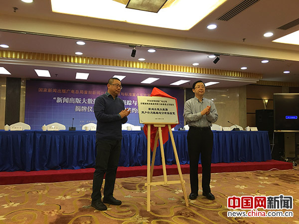 3月30日,“新闻出版大数据用户行为跟踪与分析实验室”揭牌仪式及合作联盟签约仪式在京举行,图为实验室揭牌。中国网实习记者 董小迪 摄