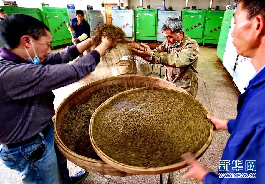 武夷山桐木村正山茶业有限公司茶农在生产红茶“金骏眉”(4月15日摄)。福建武夷山是“万里茶道”的源头,有着400多年红茶生产历史,其主产区位于武夷山自然保护区境内的桐木村。近年来,当地茶人在传承古老制作工艺的基础上不断创新,“金骏眉”就是武夷山红茶工艺创新中的代表产品,其采用野生小叶种茶的芽尖制作,茶叶外形细长如眉,茶汤色泽金黄透亮,香气幽雅,滋味甘清,深受消费者欢迎。新华社记者姜克红 摄