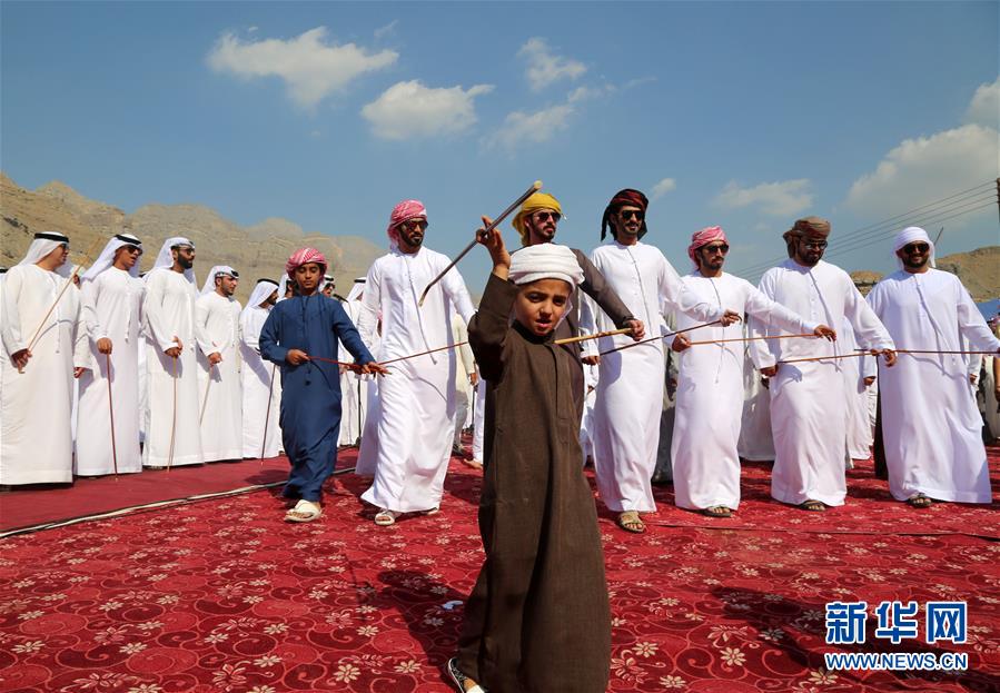 2017年3月10日,在阿联酋哈伊马角酋长国的山区,当地民众举行富有当地风情的婚礼庆典。中东地区连接着东西方文明,有着悠久的历史文化和美丽的自然风光,是古丝绸之路的重要组成部分。中国的丝绸、瓷器和茶叶经中东销往欧洲。阿联酋位于中东地区的阿拉伯半岛,地处“一带一路”交汇地带,是中国推进“一带一路”倡议的重要合作伙伴。 新华社记者李震摄