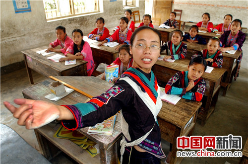 凤桂鲜,在春蕾计划的帮助下,她和十余名女童成为全村有史以来第一批上学的女孩子。毕业后,她回到家乡,成为全县第一位红瑶女教师。 雷声 摄影