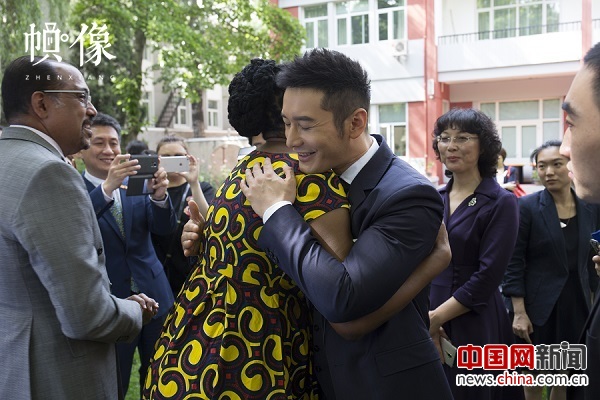 2017年5月12日,黄晓明与联合国艾滋病规划署驻华办事处代表苏凯琳博士拥抱告别。中国网记者 高南 摄
