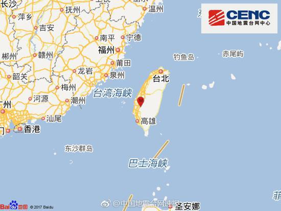 台湾嘉义县发生4.1级地震 震源深度17千米