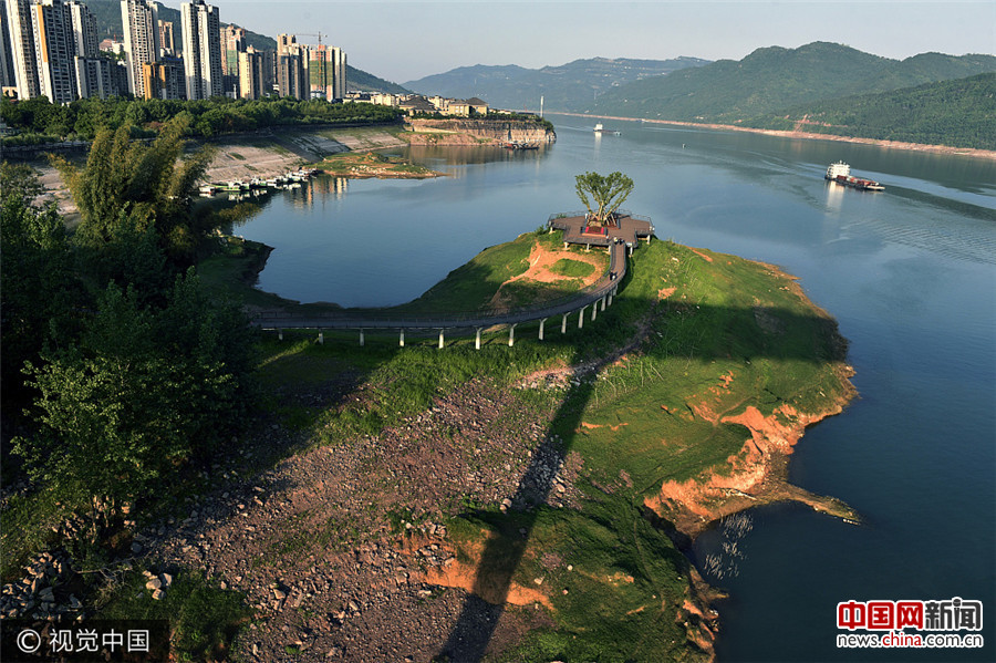 重庆云阳:晚霞消落营造真实版"在水一方"