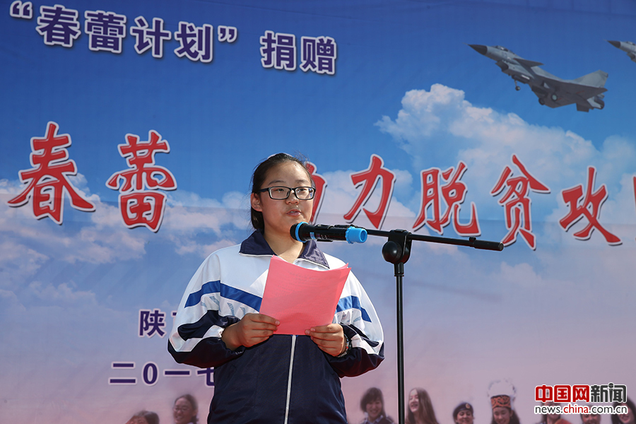 蓝天春蕾学生代表寇梦宇在活动上发言。中国网记者 陈维松 摄