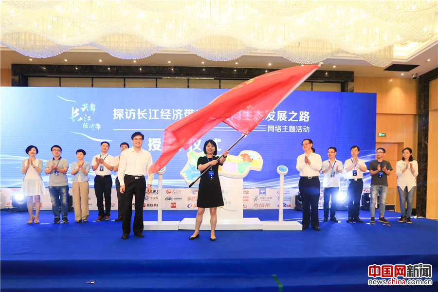 2017年6月29日,共舞长江经济带——探访长江经济带区域协同生态发展之路”网络主题活动启动仪式在重庆举行。图为授旗仪式。(主办方供图)