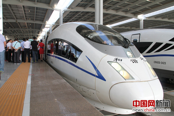 7月9日,宝兰高铁首发列车G2028次列车停靠在站台。中国网记者 唐佳蕾 摄