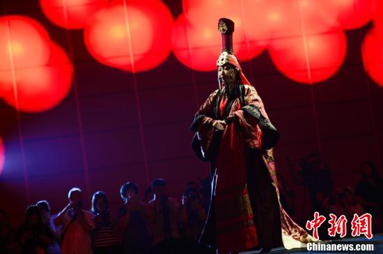 模特走秀,展示民族服饰。(中新社记者刘文华摄)