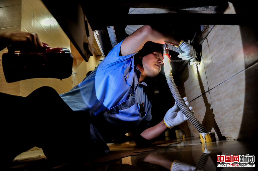 “设备医生”对水管进行维修 刘晓斌 摄