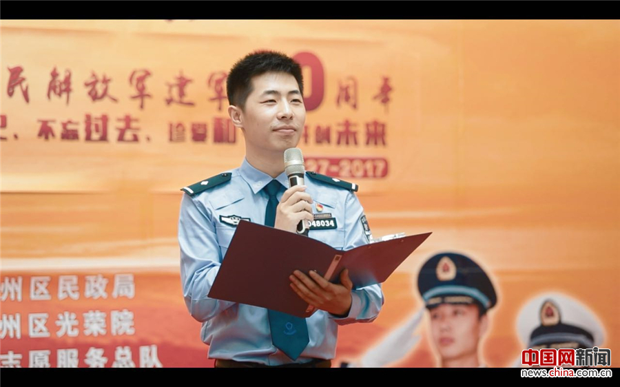 金盾志愿者服务队的干警在为老人们朗诵诗歌