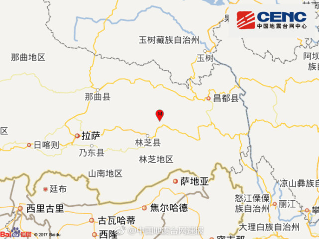 西藏林芝发生4.3级地震 震源深度7千米