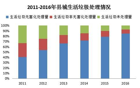 2016年年末,全国县城道路清扫保洁面积25.1亿平方米,其中机械清扫面积12.7亿平方米,机械清扫率50.7%。全年清运生活垃圾、粪便0.71亿吨,比上年减少0.8%。全国县城共有生活垃圾无害化处理场(厂)1273座,比上年增加86座,日处理能力19.1万吨,处理量0.57亿吨,县城生活垃圾无害化处理率85.22%,比上年增加6.18个百分点。