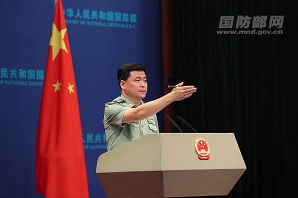 国防部新闻局副局长、国防部新闻发言人任国强大校答记者问。李晓伟 摄