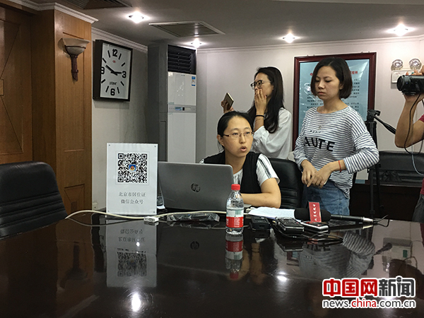 2017年8月31日,北京,工作人员向记者介绍“北京居住证”微信公众号的使用方法。中国网记者 董小迪 摄