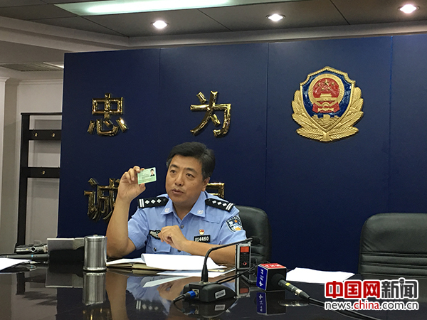 2017年8月31日,北京,北京市公安局人口管理和基层工作总队流动人口管理大队大队长杜永明向记者展示北京市居住证。中国网记者 董小迪 摄