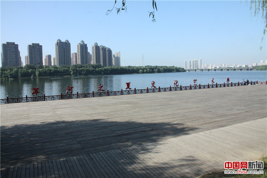 2017年9月20日,50余家全国重点网络媒体的记者走进辽宁省沈阳市浑河南岸的沈水湾公园。图为公园外设立的标语。中国网记者 吴佳潼 摄