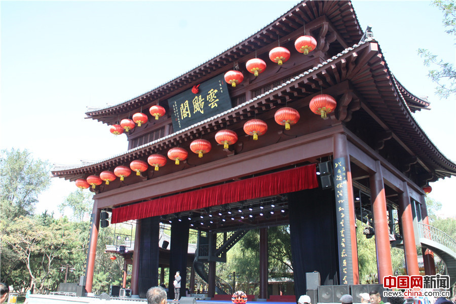 2017年9月20日,50余家全国重点网络媒体的记者走进辽宁省沈阳市浑河南岸的沈水湾公园。图为公园内辽代文化特色的亭台楼阁“云飏阁”。中国网记者 吴佳潼 摄