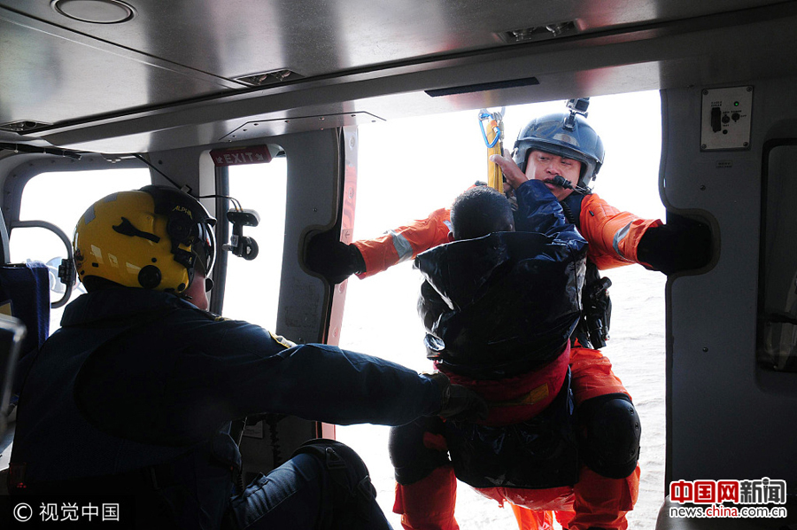 2017年10月2日,山东东营,交通运输部北海救助局所属的北海第一救助飞行队紧急出动专业救助直升机,营救被困海中的遇险者。