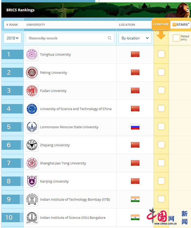 中国网伦敦11月28日讯 (记者 王志永)近日,英国QS全球教育集团公布了2018年金砖国家大学排行榜,共有300所大学参与排名。中国(此次统计未含港澳台地区院校)占据94席,其次是俄罗斯(68所)、印度(65所)和巴西(61所),南非占据12所。