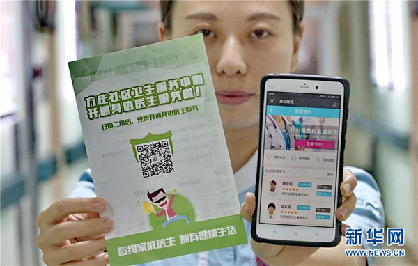 北京市丰台区方庄社区卫生服务中心医务人员展示家庭医生APP。新华社记者 李欣 摄