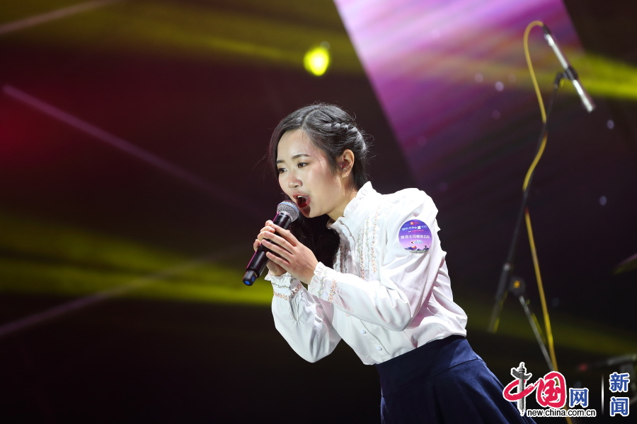 2017年12月11日,虾米音乐首届校园歌手大赛在北京举行,来自北京赛区的选手徐思瑶演唱了由王菲和马云原唱的歌曲《风清扬》。中国网记者 陈维松 摄