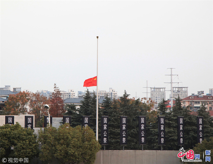 南京大屠杀遇难同胞纪念馆举行降半旗仪式