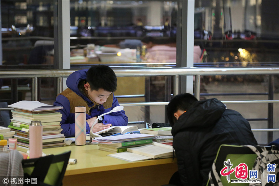 12月13日,郑州。夜晚的郑州大学校园内,教学楼的楼梯、走廊,以及图书馆、自习室内,处处可见刻苦自习的考研学生。左冬辰/视觉中国