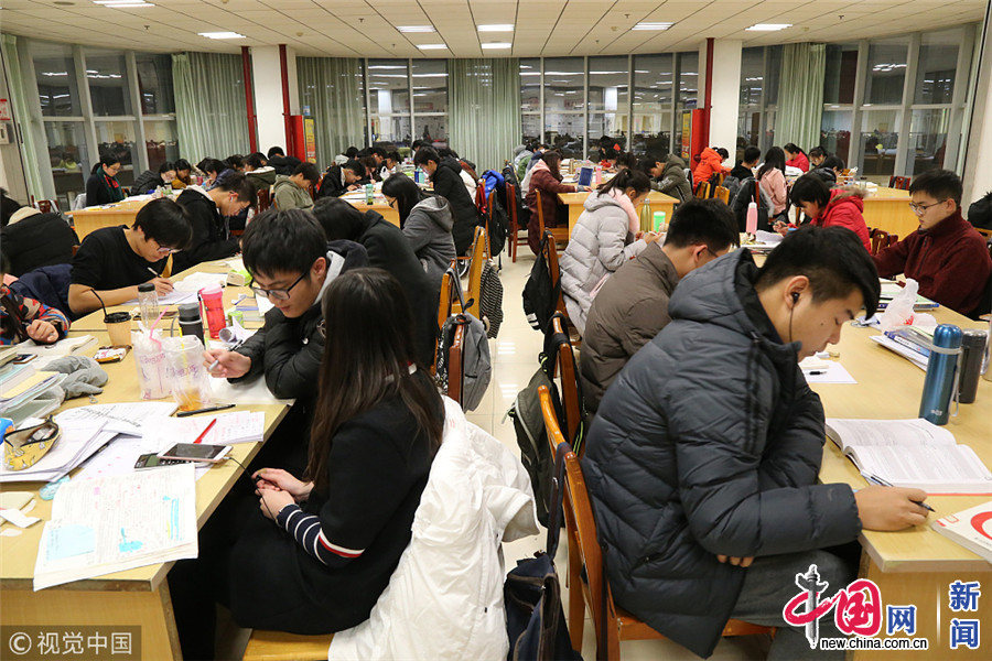 12月13日,郑州。夜晚的郑州大学校园内,教学楼的楼梯、走廊,以及图书馆、自习室内,处处可见刻苦自习的考研学生。左冬辰/视觉中国