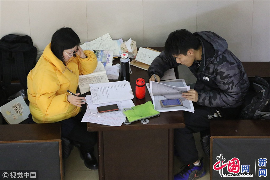 12月13日,郑州。夜晚的郑州大学校园内,教学楼的楼梯、走廊,以及图书馆、自习室内,处处可见刻苦自习的考研学生。左冬辰/视觉中国