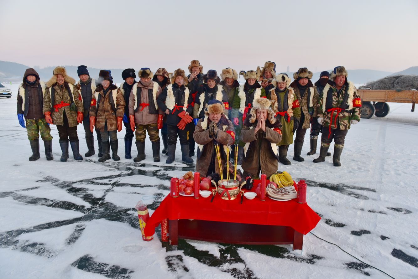 2017年12月23日,吉林省长春市,石头口门水库冰面上开展冬捕活动。李雪松 摄