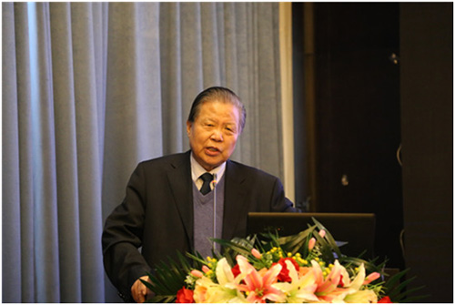 图为全国政协十届常委、著名经济学家、国务院参事室原主任任玉岭在论坛上做主题演讲