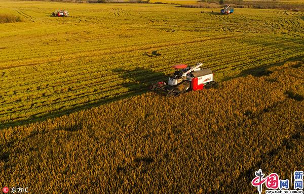 2017年11月2日,安徽,农户在收稻谷。图片来源 东方IC