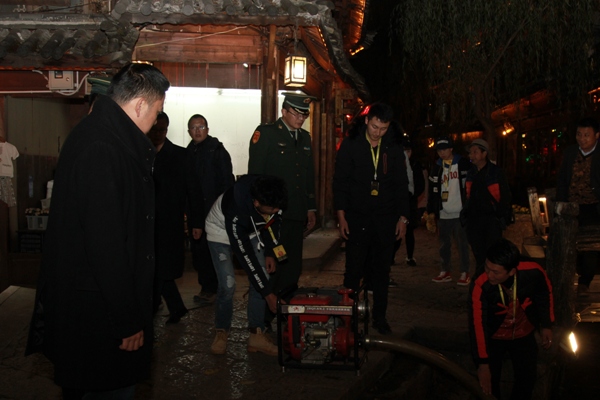2017年12月25日晚,丽江支队政委辛雷、支队长王晓敏带领2个工作组深入大研古城、大地影院、芭比KTV、音乐工坊KTV、官房大酒店等11家人员密集场所开展夜查行动,重点检查了各场所消防安全负责人、值班人员、消防控制室操作人员是否在岗在位及落实防火巡查检查制度,消防设施是否正常运行,安全出口和疏散通道是否畅通,是否违规在室内使用明火、燃放烟花爆竹,公共娱乐场所是否违规超员营业,单位微型消防站执勤值班是否正常等26个消防安全方面的落实情况。经检查发现,大部分场所消防安全责任制落实较好,消防设施完好、有效,但也发现仍有个别场所存在灭火设施配备不完全、应急照明灯损坏、疏散通道堵塞等突出的火灾隐患。