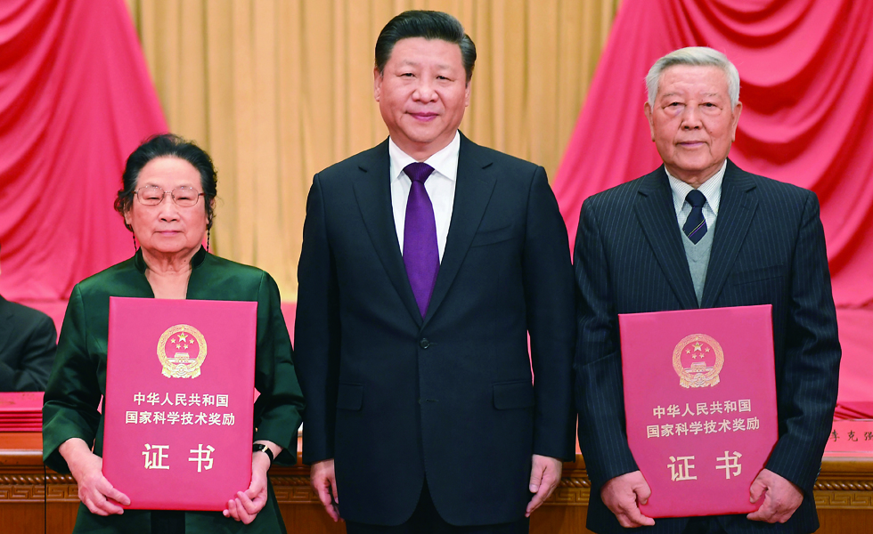 2017年1月9日,习近平在国家科学技术奖励大会上,向获得2016年度国家最高科学技术奖的中国科学院物理研究所赵忠贤院士和中国中医科学院屠呦呦研究员颁奖。