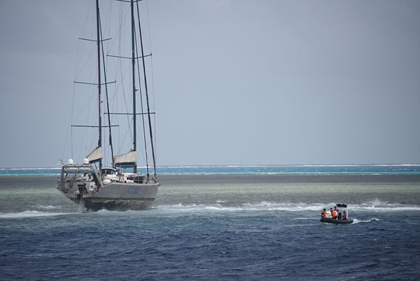 这张图片显示的是一艘正在进行环球航行的外籍帆船。去年12月31日,这艘帆船在南沙群岛三角礁搁浅,船上来自瑞士、法国和波兰的三人被困。中国军队发现上述情况后,第一时间协调海警等海上搜救力量实施救援行动,成功救助上述三人脱险。