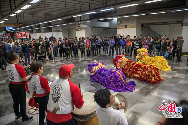 当地时间2月8日,文化部“欢乐春节”图片展在墨西哥城12号地铁线换乘站Ermita正式开展。(摄影:DANIEL VILLA)