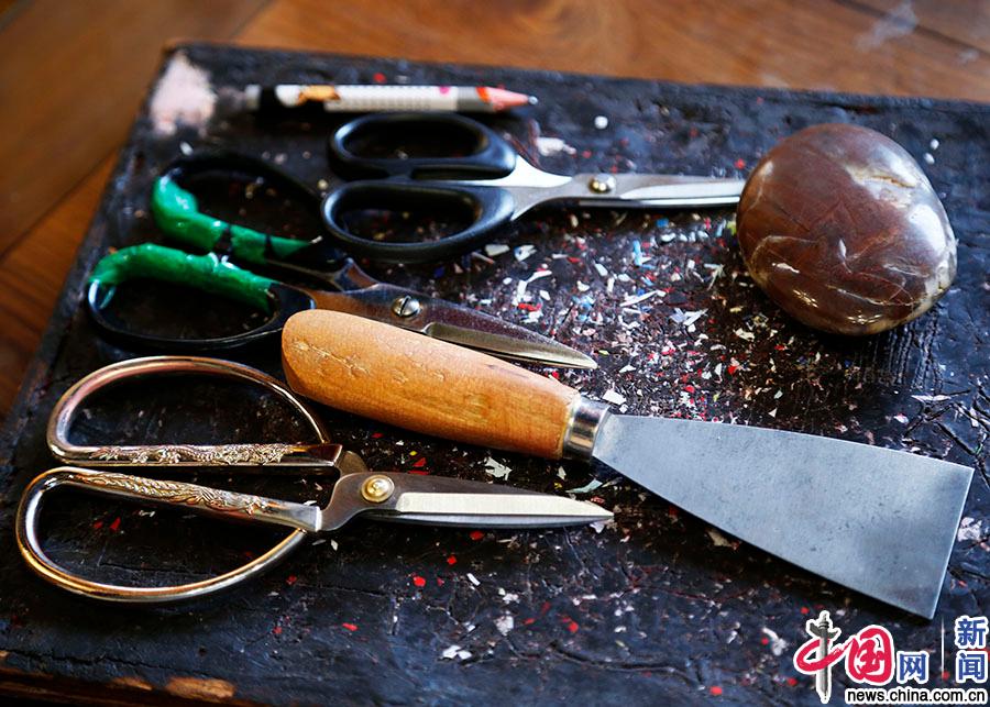 姚雨林的剪纸工具。中国网实习记者 张钰 摄