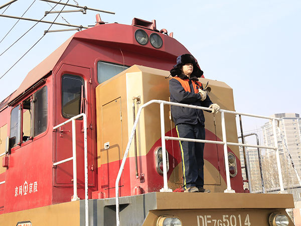 中国网北京2月14日讯(记者 仝选 实习记者 谢秋霜)为确保春运期间列车的安全行驶、旅客的平安出行,北京站运转车间甲班调车五组的组员们持续奋斗在自己的调车工作岗位上。