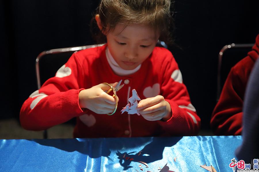 2018年2月17日,北京中华世纪坛,市民在传统文化市集中体验剪纸等非遗技艺。中国网记者 陈维松 摄
