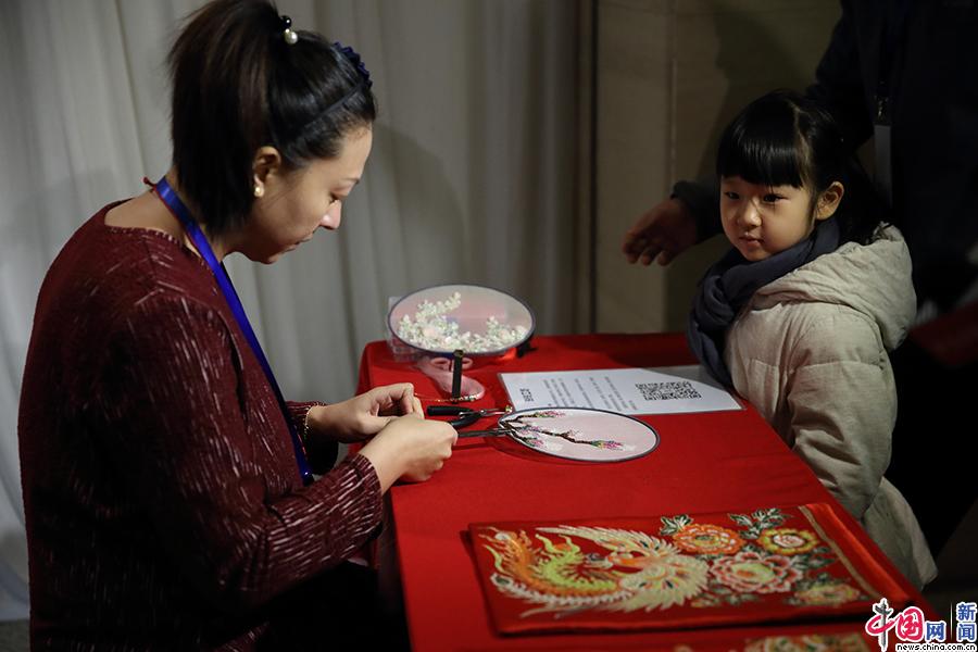 2018年2月17日,北京中华世纪坛,市民在传统文化市集中体验民族特色和传统特色产品。中国网记者 陈维松 摄