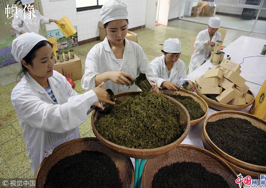 2016年08月23日,河北省保定市,涞水是河北省环首都扶贫攻坚示范区重点县。位于三坡镇马各庄村的山茶加工厂,正是利用当地的固有资源黄芩制作成茶叶以及茶叶的衍生品茶叶枕头,深受消费者喜爱。视觉中国