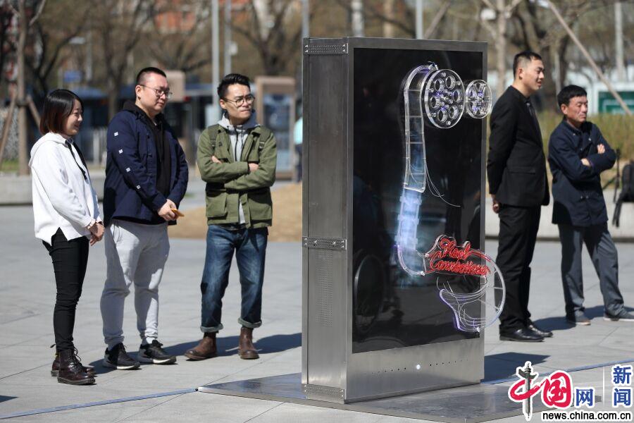 艺术装置吸引路过的行人驻足观看。